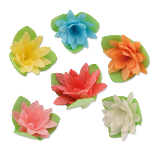 Если нужно быстро украсить десерт, можно купить вафельный декор для торта или пирожного. Это готовые объемные цветы, листья или фигурки, изготовленные из специальной вафли на крахмальной основе, которая долго хранится и хорошо держит форму, в том числе на самом десерте. Достаточно красиво разложить вафельные цветы на поверхности вашего торта или кекса, аккуратно зафиксировав их на помадку или пищевой гель, и вид десерта становится завершенным.